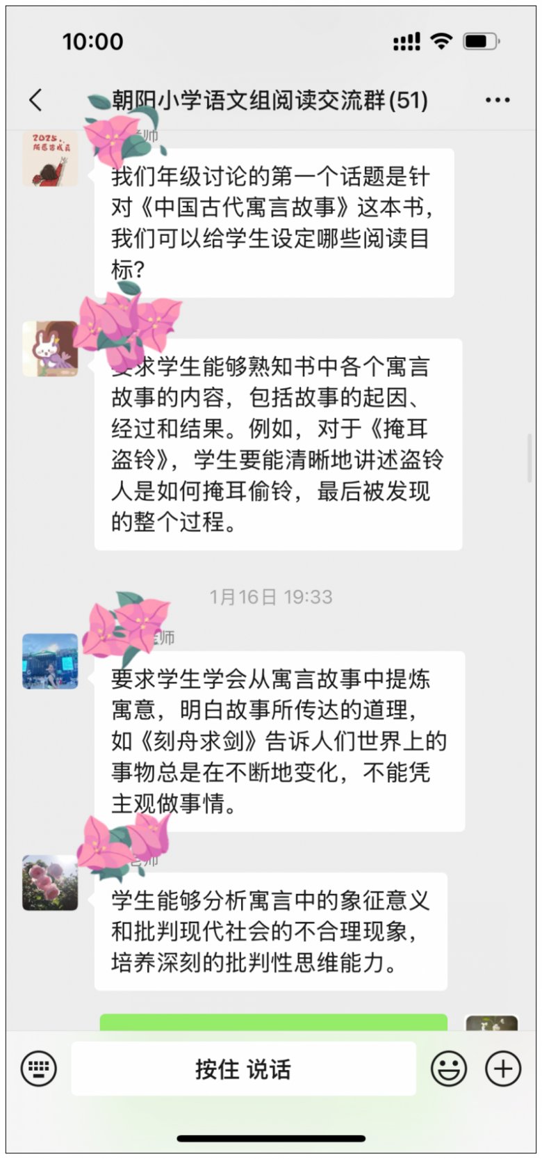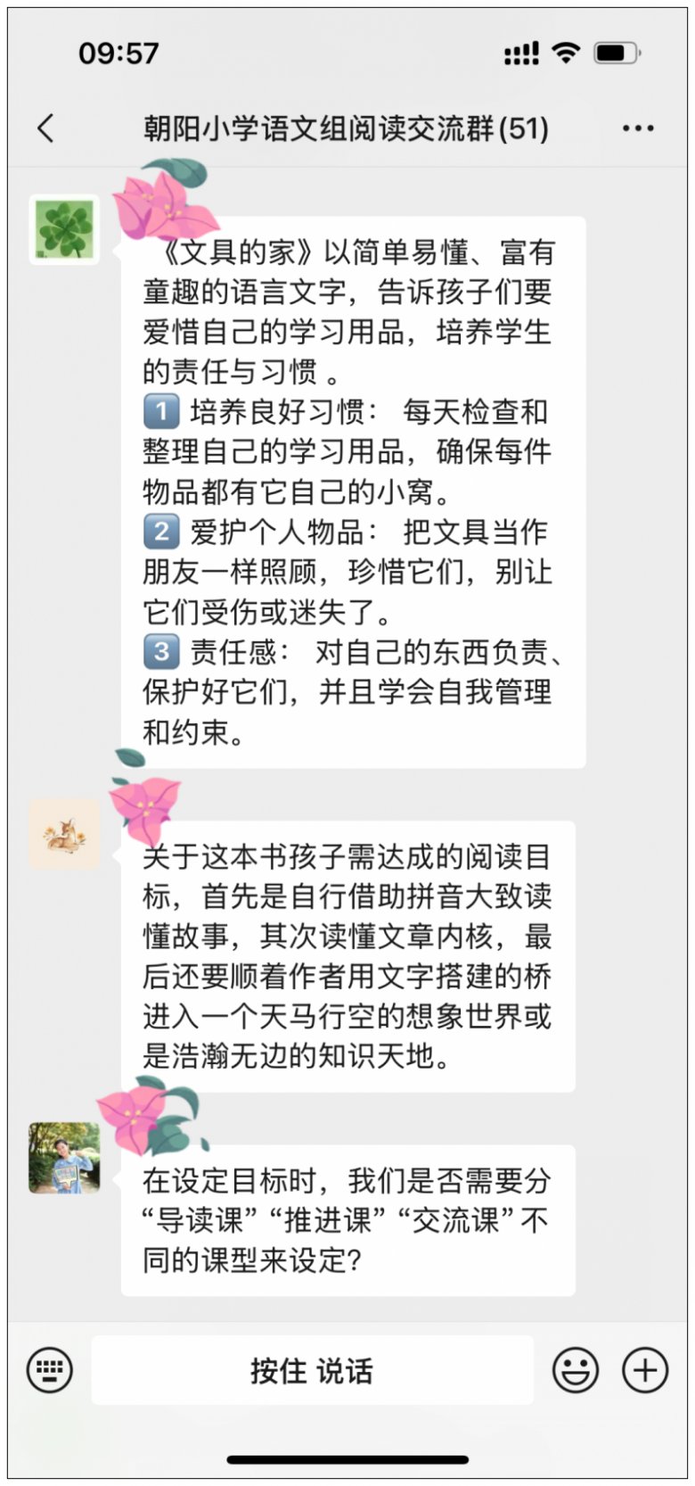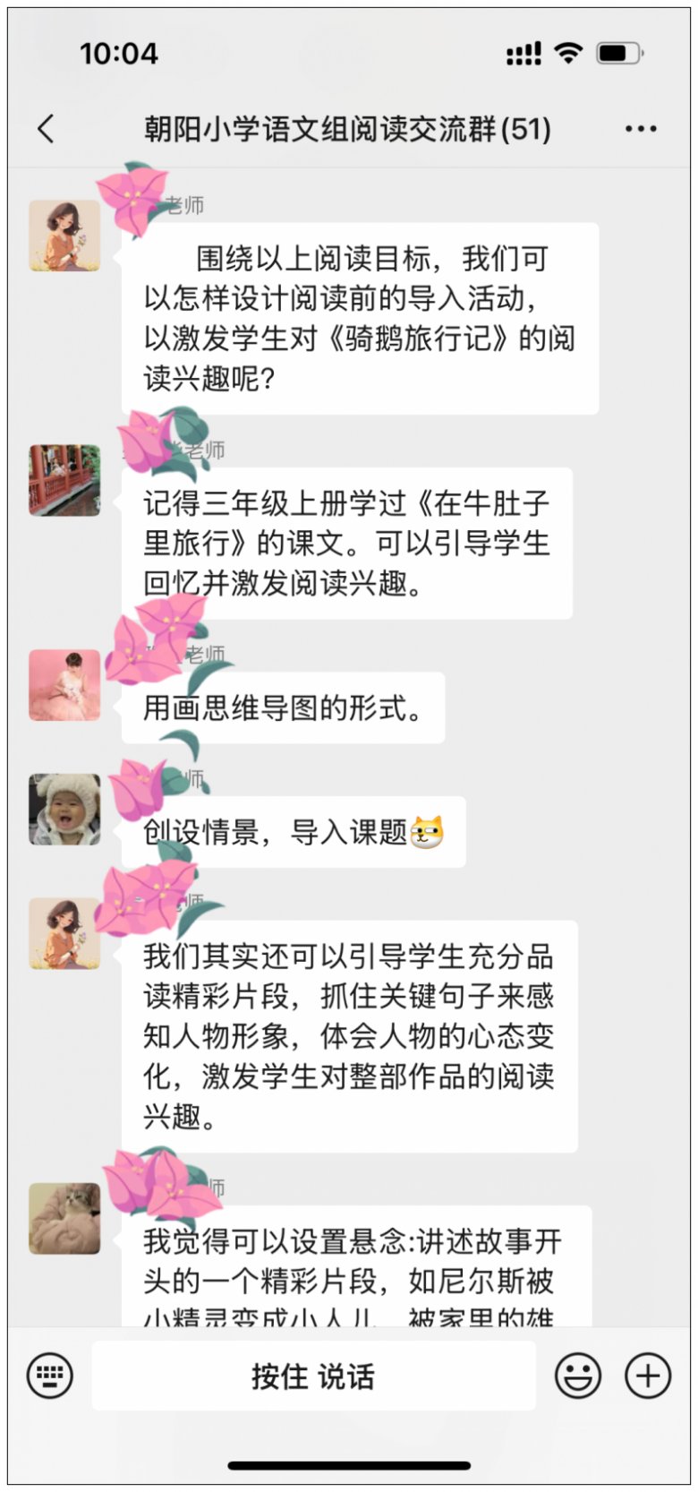 在个体研读的基础上,老师们分组开展了线上交流活动。大家围绕“学生阅读难点”“教师如何推动阅读”等话题畅所欲言,分享阅读心得,探讨阅读策略。思想的火花在云端绽放。