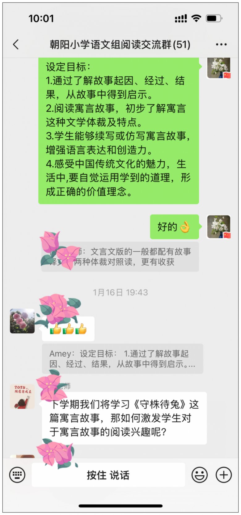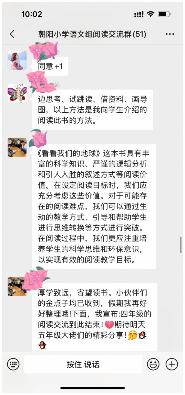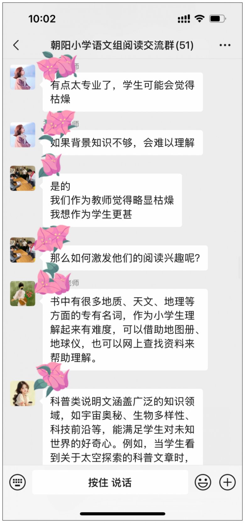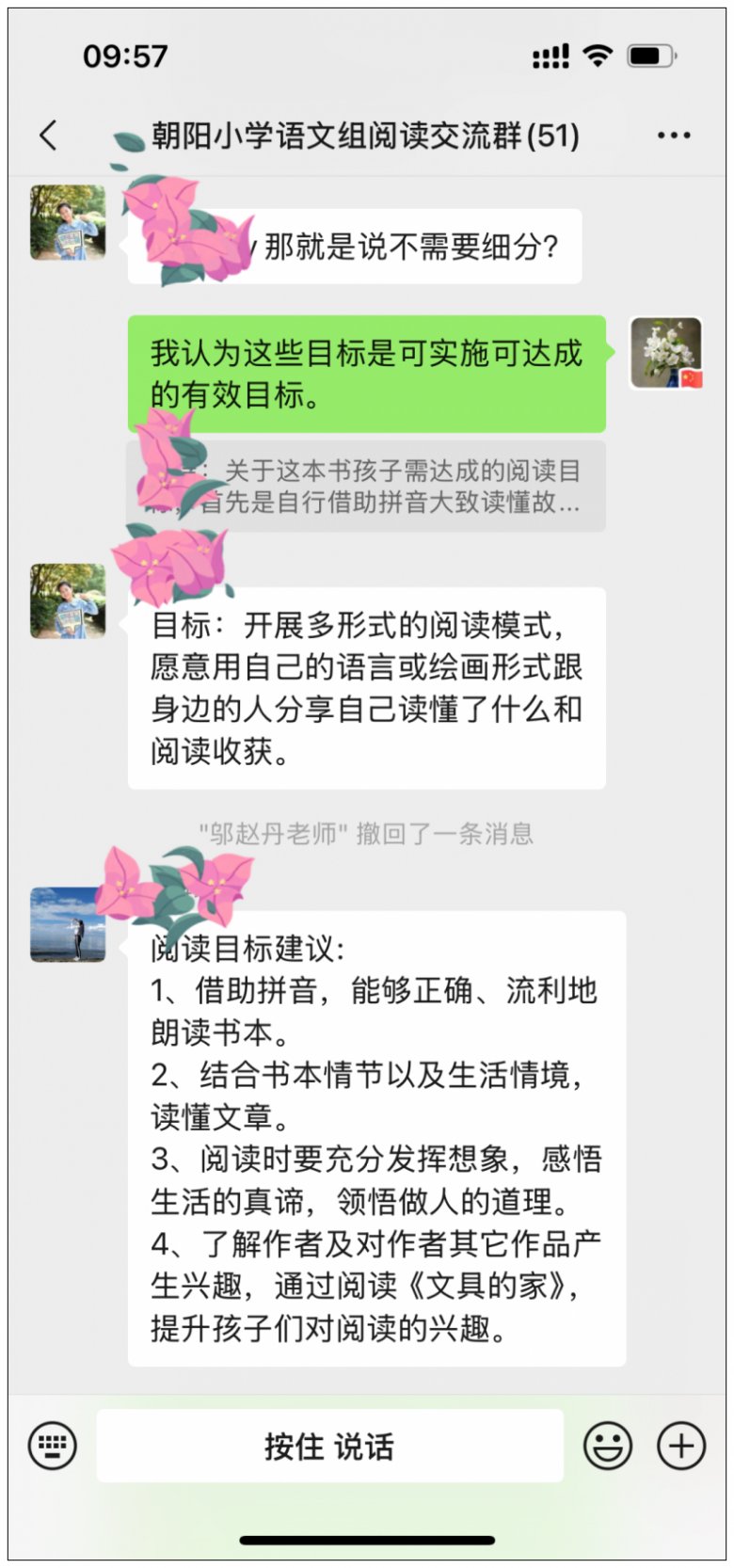 在个体研读的基础上,老师们分组开展了线上交流活动。大家围绕“学生阅读难点”“教师如何推动阅读”等话题畅所欲言,分享阅读心得,探讨阅读策略。思想的火花在云端绽放。