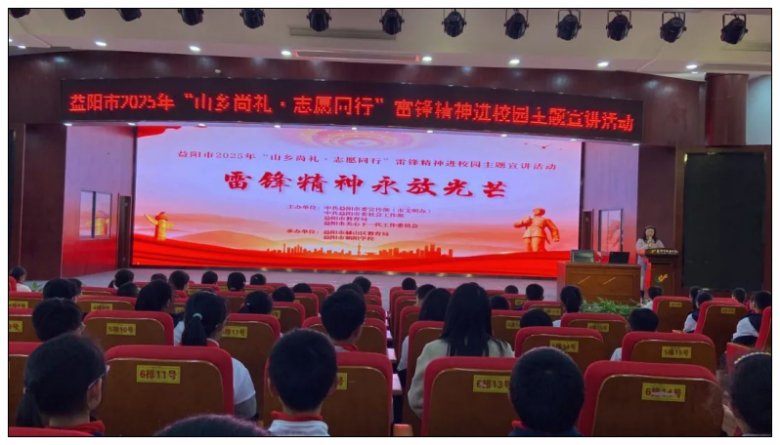 3月18日,由中共益阳市委宣传部(市文明办)、中共益阳市委社会工作部、益阳市教育局、益阳市关心下一代工作委员会主办的2025年“山乡尚礼·志愿同行”雷锋精神进校园主题宣讲活动在我校报告厅举行。“中国好人”马昌杰以《雷锋精神永放光芒》为题,通过四个温暖故事与师生共话新时代志愿精神,激发青少年崇德向善的力量。
