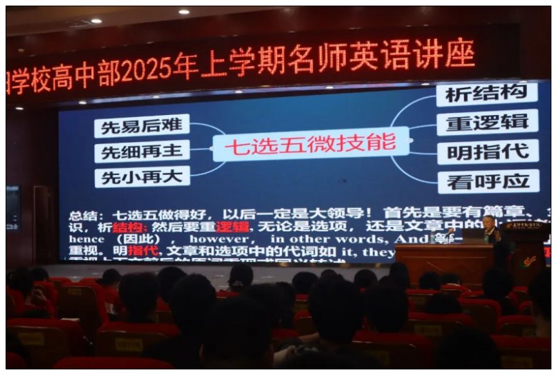 本次系列主题讲座活动,是我校助力高三学子备战高考的重要举措,不仅帮助学生们掌握了学习方法和解题技巧,对以后的英语学习具有深刻的指导意义,更助力师生精准把握新高考的命题意图和改革趋势,增强了高三师生备战高考的信心。我们相信,通过名师的指点和学子们的努力,朝阳的学子们一定能够在六月考场上披荆斩棘,收获属于自己的辉煌。