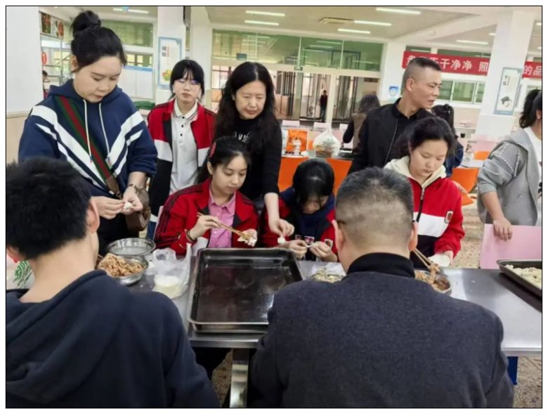 在老师和家长的指导下,食堂阿姨的帮助下,一碗碗热气腾腾的水饺出锅了。孩子们迫不及待地夹起一个,咬上一口,汤汁溅出,满脸都是满足。老师则带着亲和笑容,穿梭在家长和孩子中间,适时送上鼓励话语,那目光似春日暖阳,温暖着每一个人。