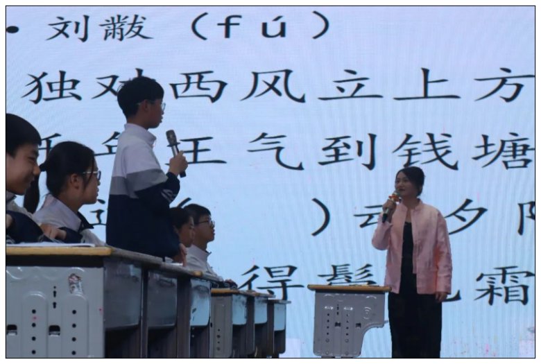 《诗画秘境:从意象解码到意境重生》的课堂精彩纷呈。胡晓艳老师宛如一位智慧的引路人,引领学生进入诗画秘境。老师通过情景设置、试炼闯关、小组探究等,将诗歌中的意象、意境、画面立体化呈现,让学生们深刻理解古诗词的文化内涵。课堂上,九年级初103、105班学生们沉浸在诗歌营造的意境中,充分发挥想象力,用优美的语言描绘出脑海中的画面,对诗歌意境进行再创作,展现出非凡的创造力。他们自信大方地展现自己的素养,表达对诗歌的热爱与理解,课堂氛围热烈而浓厚。